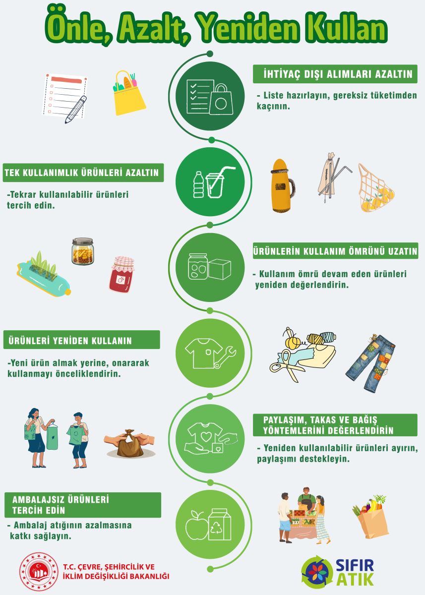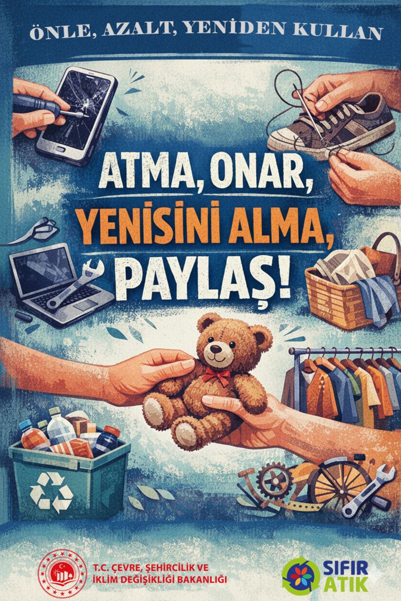 2026 yılı aylık Sıfır Atık temaları kapsamında Ocak ayına ilişkin farkındalık materyalleri yayımlanmış olup, “Atma, Onar, Yenisini Alma, Paylaş” yaklaşımıyla atıkların kaynağında önlenmesi, azaltılması ve yeniden kullanımının önemine dikkat çekilerek sıfır atık bilincinin toplumun tüm kesimlerinde yaygınlaştırılması hedeflenmektedir.